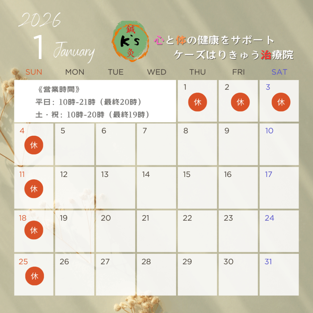 お忙しい中だとは思われますが、年をまたぐ前に心身ともにリフレッシュし、新年を健やかに過ごすための準備をしておきませんか?