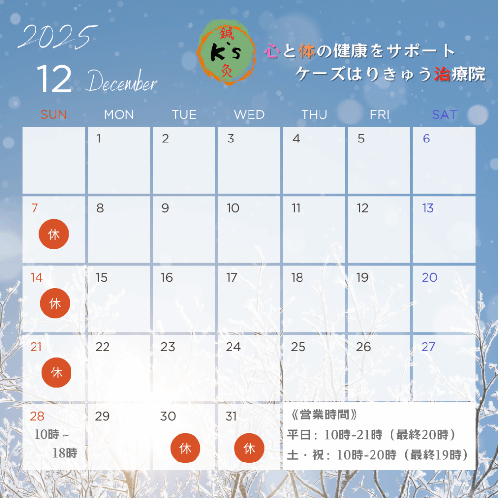 寒さも身に染みるようになり、年末の忙しさと合わせて体調を崩しやすい時期です。